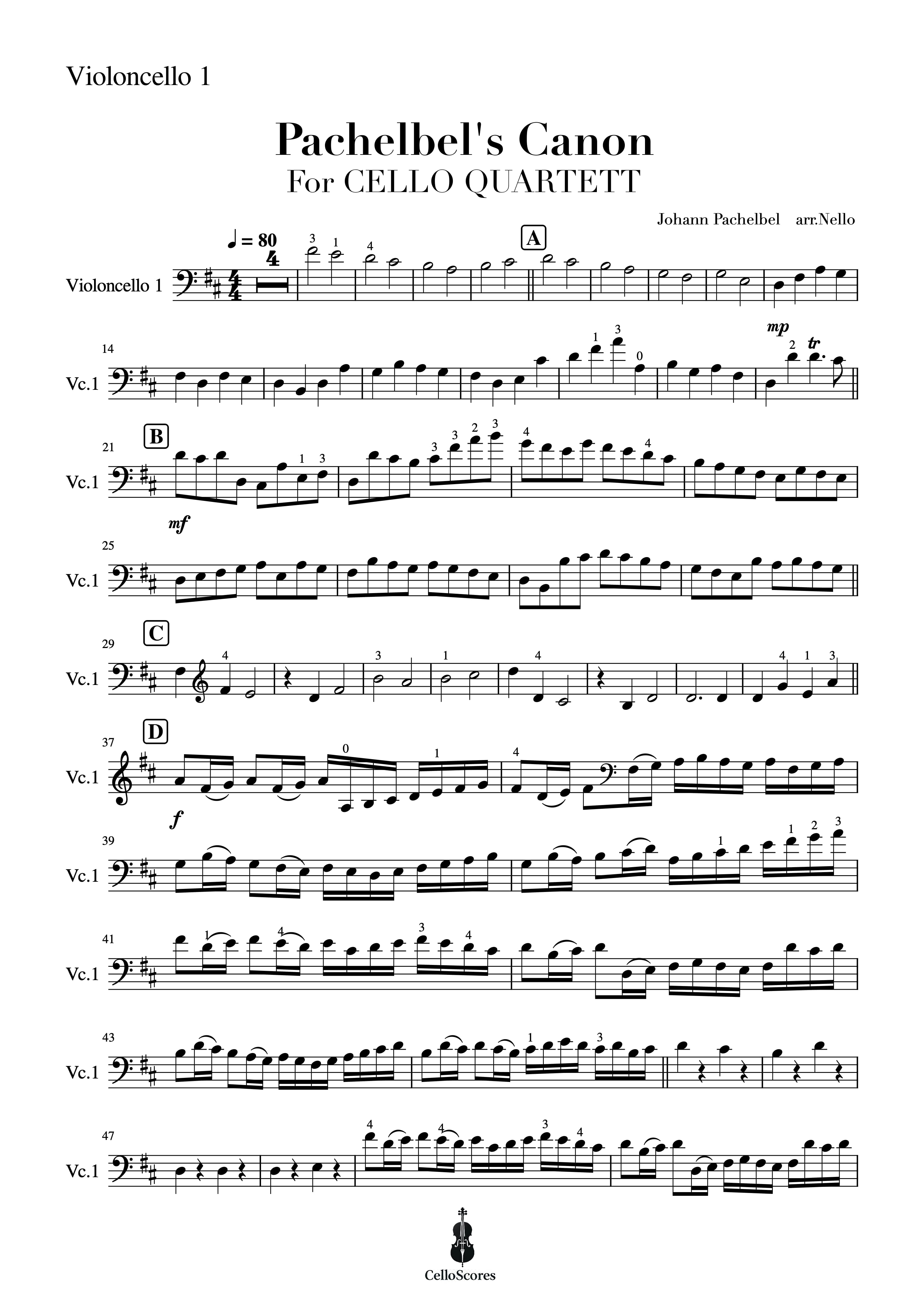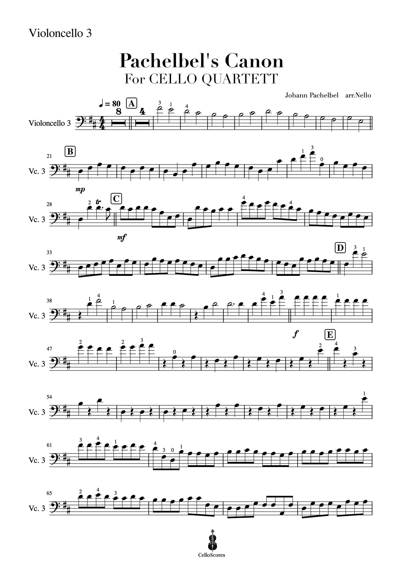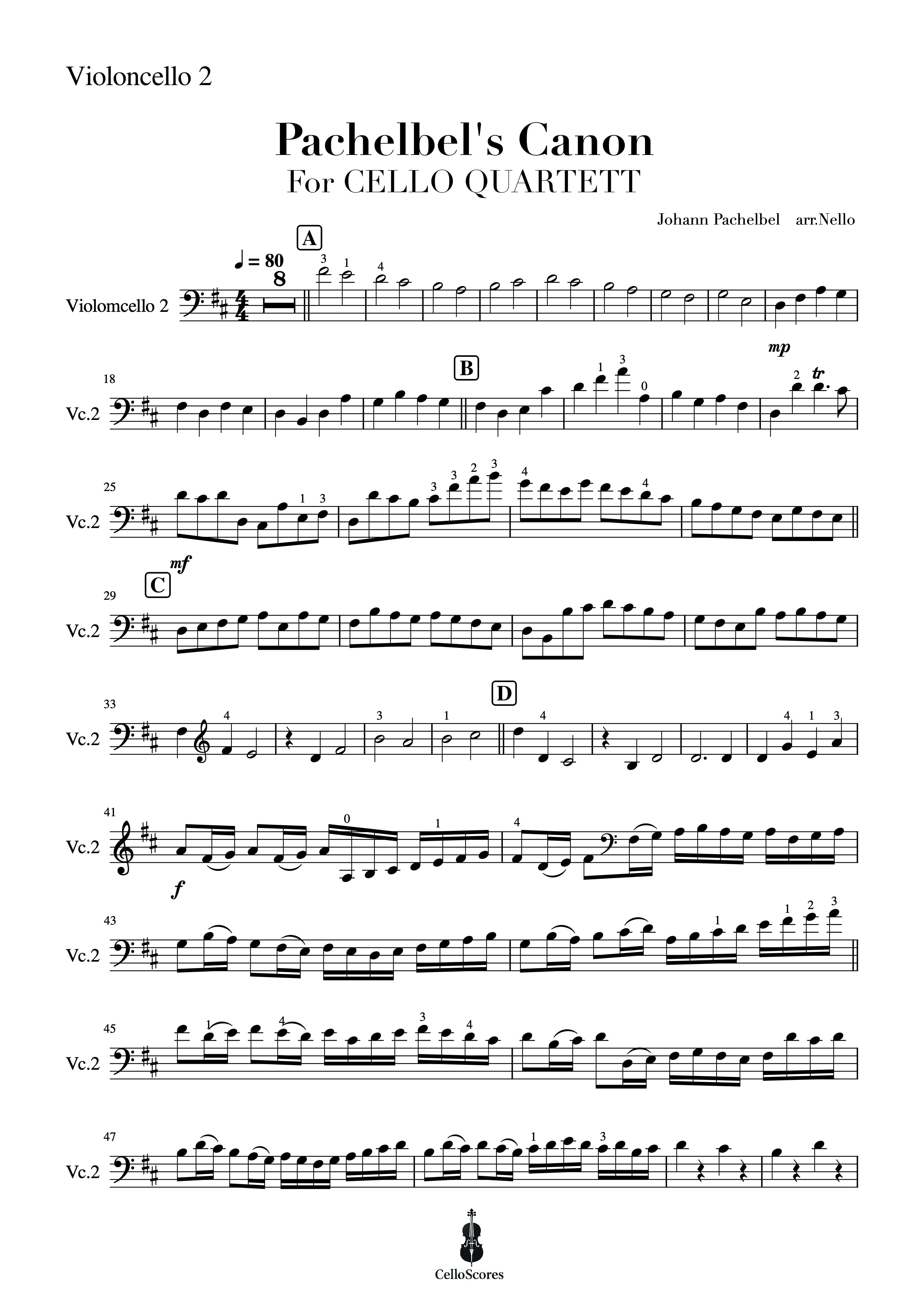 全パートにプロチェリストYoutuberネロがフィンガリング(指番号)を記載し、