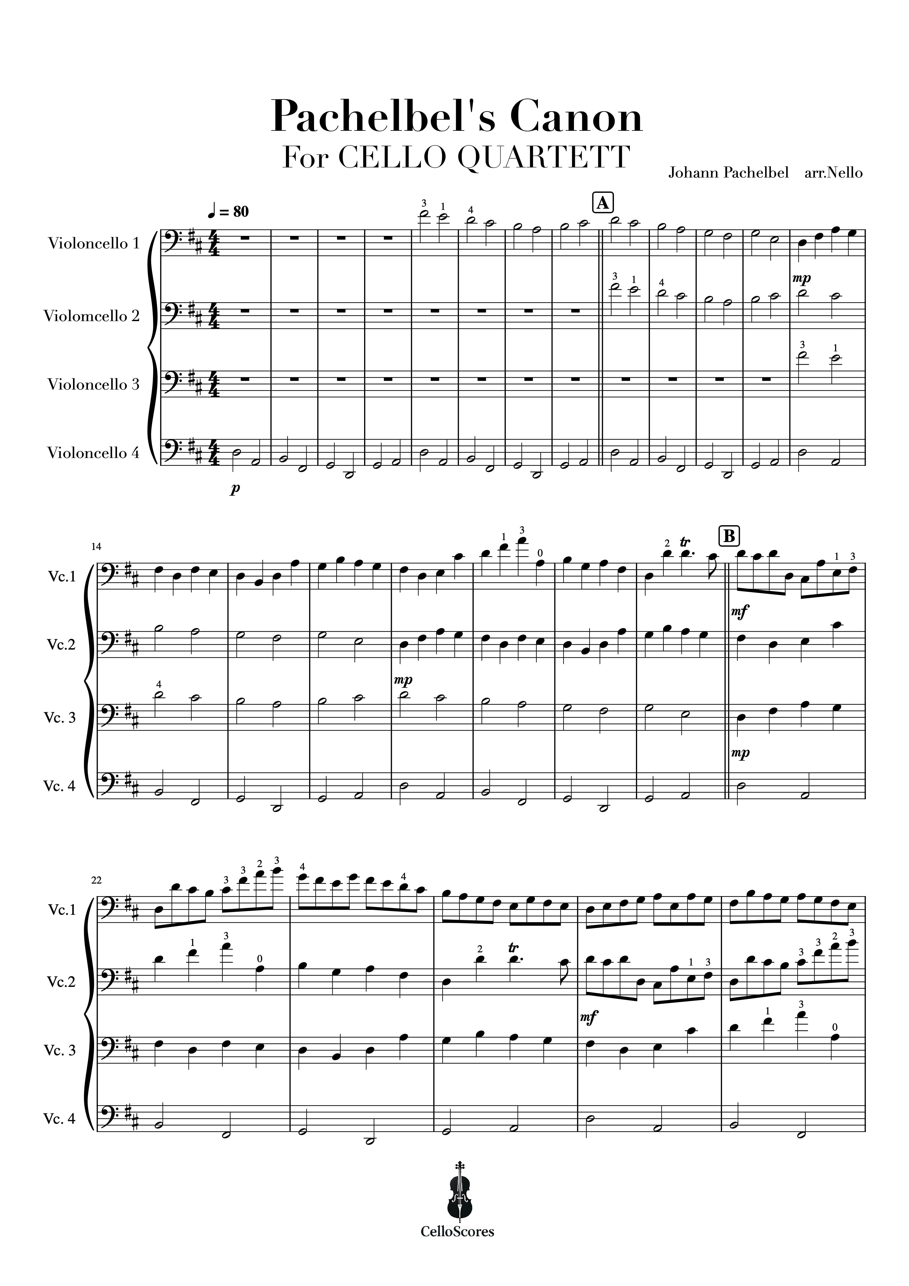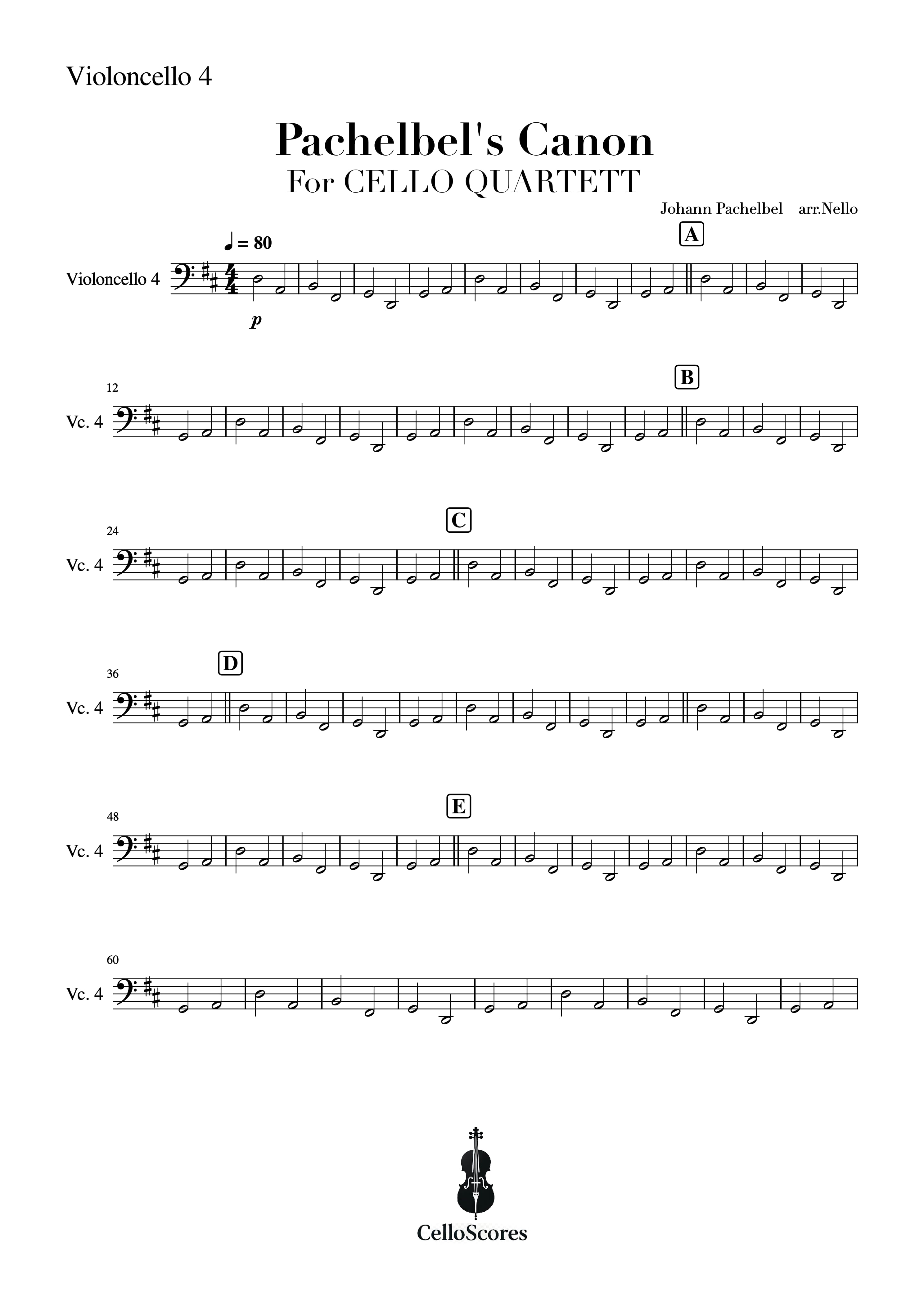 チェロ4重奏 譜面(1–4 Cello / 中級 ×2・初級 ×2)