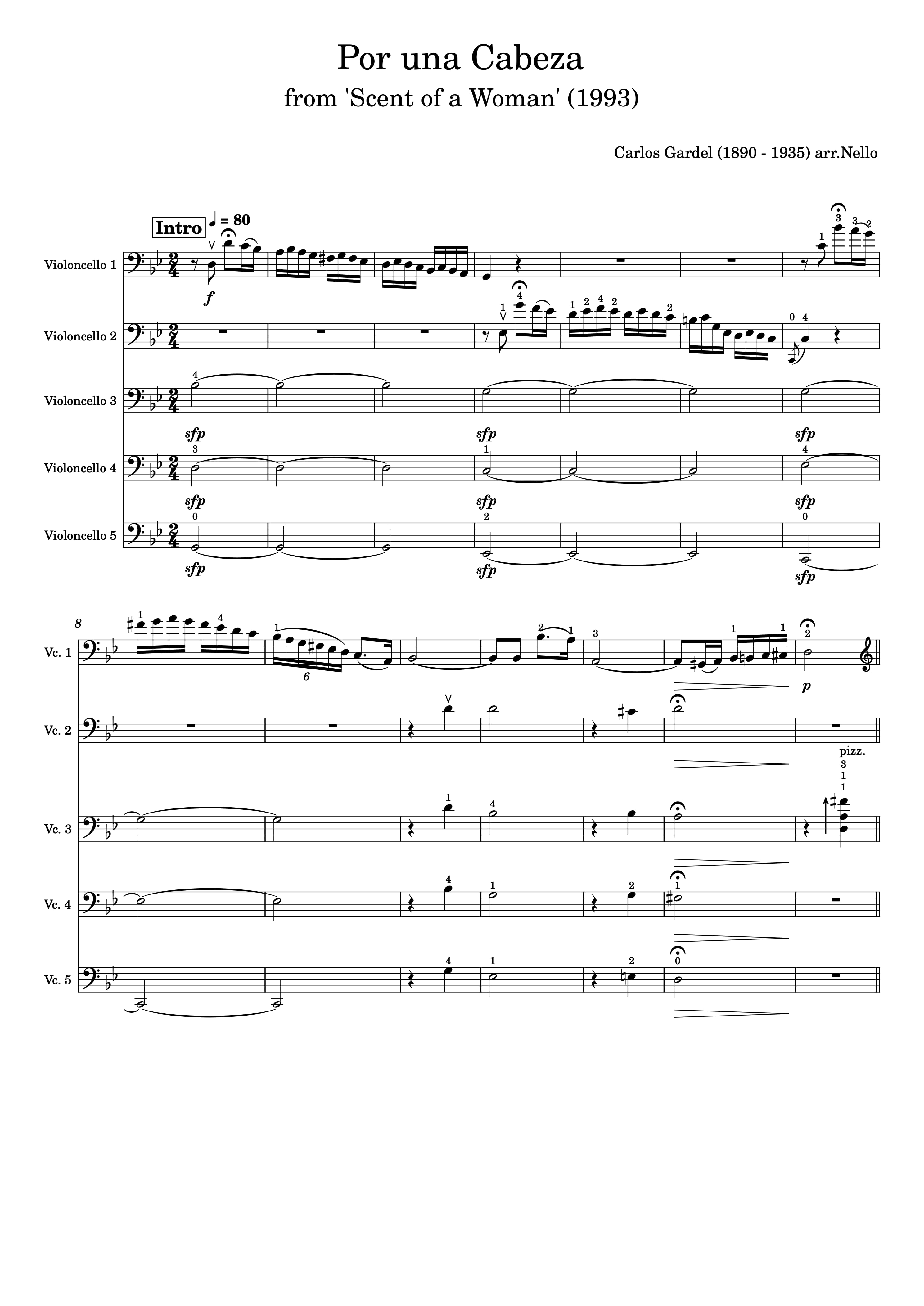 アルゼンチン・タンゴの名曲「Por una cabeza」を、チェロ五重奏のために大胆かつエレガントにアレンジしました。アレンジのベースはLAYERS CLASSICです。